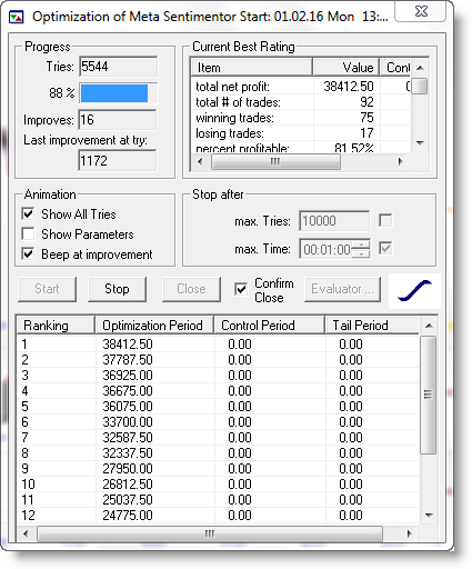 Die Backtesting-Funktion erlaubt es Tradern schnell und einfach ihre Strategien zu testen. Zudem kann man so auch seine bestehenden Strategien anpassen und perfektionieren und das ganz ohne Programmierkenntnisse. Im Optimierungsfenster kann der Benutzer das Ziel auswählen, auf das er seine Handelsstrategie hin anpassen möchte oder einen Parameter wählen, den er optimieren möchte. Zur Zeit gibt es 12 Ziele. Zum Beispiel: